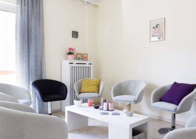 Επίσης έχω ειδικευτεί στην θεραπεία των εξαρτήσεων (συναλλακτική ανάλυση, μουσικοθεραπεία, χοροθεραπεία) και των διατροφικών διαταραχών.